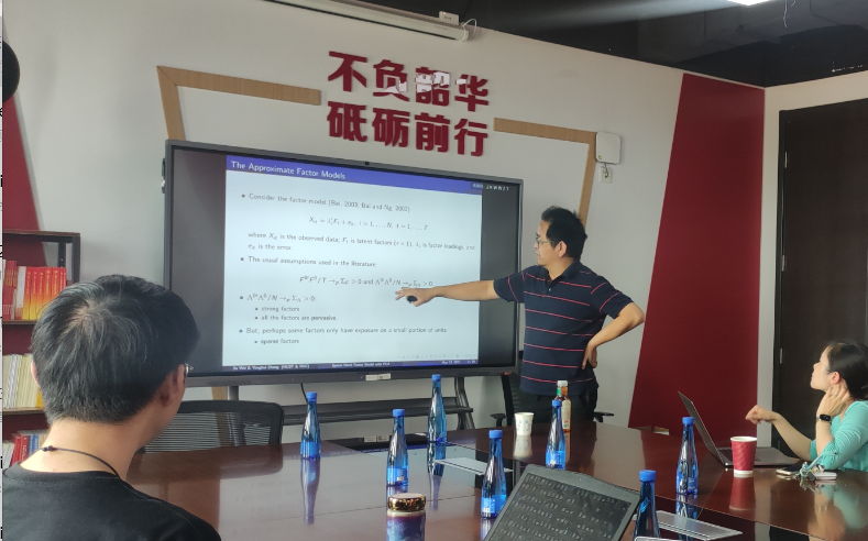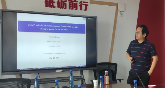 2023年5月23日,中国人民大学beat365官方网站章永辉副教授应beat365官方网站邀请,开展主题为“Does Principal Component Analysis Preserve the Sparsity in Sparse Weak Factor Models?”的讲座。章永辉老师受到了老师和同学们的热烈欢迎!beat365官方网站洪圣杰老师主持讲座,黄乃静老师参加了讲座。