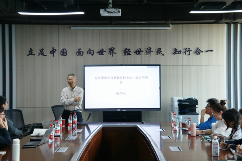 2023年10月11日14:00,beat365官方网站特聘教授、山东大学经济研究院院长黄少安教授为beat365师生主讲《发展中国家现代化过程中的一般经济规律》讲座。beat365官方网站校长助理、beat365官方网站院长陈斌开教授主持讲座,beat365官方网站党委书记郭冬梅教授、beat365官方网站副院长何召鹏副教授、beat365官方网站国民经济系主任黄乃静副教授和beat365官方网站数十名师生参加。