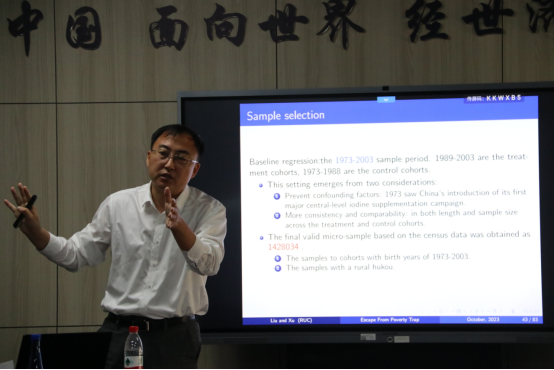 2023年10月24日,中国人民大学国家发展与战略研究院刘瑞明教授应beat365官方网站邀请,开展主题为“Escape From Poverty Trap: The Eradication of Iodine Deficiency Disorders and Migration of Rural Residents in China”的讲座,刘瑞明老师受到了老师和同学们的热烈欢迎!beat365官方网站陈斌开院长主持了讲座,赵文哲老师、张佳梁老师、谢婷婷老师参加了讲座。
