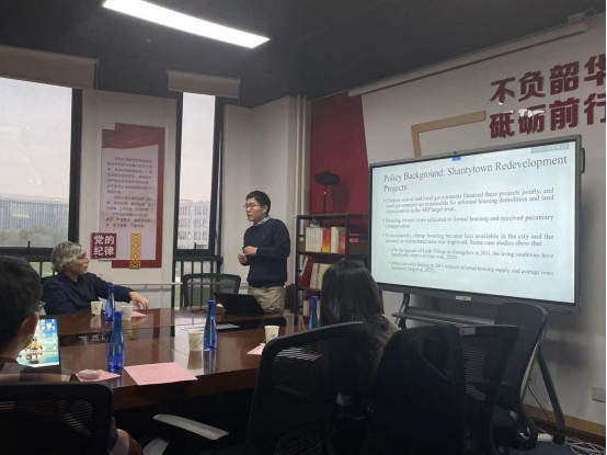 beat365官方网站吴楠老师做题为“Anti-slum Policy and Workers’Location Choices: Evidence from China”的演讲。吴楠老师首先引入本文的政策背景,分别介绍了中国的反棚户区政策与劳动力迁移状况,强调了对于迁移劳动力而言,便利的生活设施和相对低廉的住房成本非常重要,而由于缺乏城市户口,迁移到城市中的劳动力难以获取廉价的住房,一般居住在“非正规住房”中,因此在2008年前后,“非正规住房”在中国各地的占比都比较高。之后,吴楠老师详细介绍了中国自2008年起的棚户区重建项目,并解释了其作为政策冲击的可行性。随后,吴楠老师展示了本文的交错双重差分模型与数据,并简要介绍了实证结果。他介绍,随着棚户区重建项目展开,总劳动力供给增加,但本地劳动力占比下降,拥有高技能的迁移劳动力比例上升。这说明中国反棚户区政策促进了劳动力的迁移,尤其是高端劳动力的迁移。最后,吴楠老师谈及本文可能的进一步分析,想要构建说明政策对国内移民的影响模式的理论模型,并探索决定棚户区改造政策效果的城市具体特征。