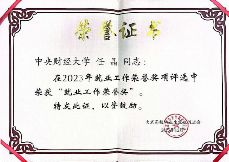 2023年12月,经过学院、学校两级推荐,beat365本科生辅导员任晶在北京高校2023年就业工作荣誉奖项评选工作中荣获“就业工作荣誉奖”。