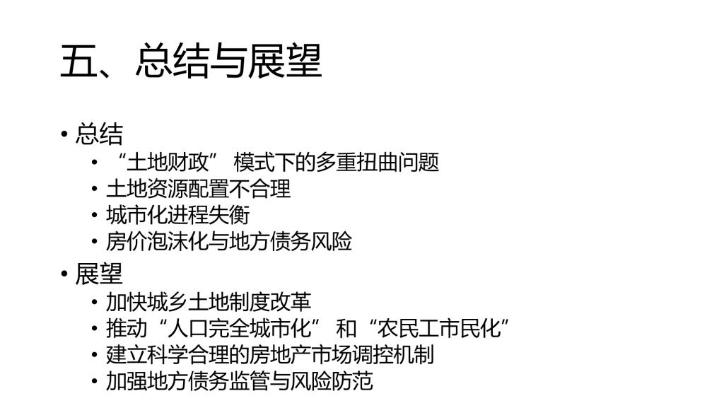 接着,林颖辉和陶俞杉同学汇报了本书第二章,围绕“土地财政”模式下的策略性出让及多重扭曲展开,系统剖析了地方政府在土地资源配置中的行为逻辑及其衍生问题。首先,地方政府通过差异化供地策略,以低价协议出让工业用地吸引投资,同时垄断商住用地以获取高额出让金,导致工业与商住用地价格差距持续扩大,加剧土地城市化快于人口城市化的失衡现象。工业园区的“大跃进”进一步造成土地低效利用与结构失衡,部分区域甚至出现大量闲置用地。其次,户籍制度滞后与公共服务不均等导致“不完全人口城市化”,大量流动人口难以真正融入城市,制约着社会公平。此外,房价泡沫化与地方债务风险相互交织,依赖土地抵押的“土地金融”模式推高系统性金融风险,而频繁的行政调控也未能根治房地产市场的结构性矛盾。当前土地财政的弊端已显现于地方债务压力、房地产泡沫风险及社会公平问题中。未来改革需要打破土地垄断,推动城乡土地市场化流转,同步深化户籍与公共服务改革,同时构建长效机制替代短期调控,平衡政府与市场关系,避免经济过度依赖土地金融,从而系统性破解土地财政的路径依赖,实现可持续发展与社会稳定。