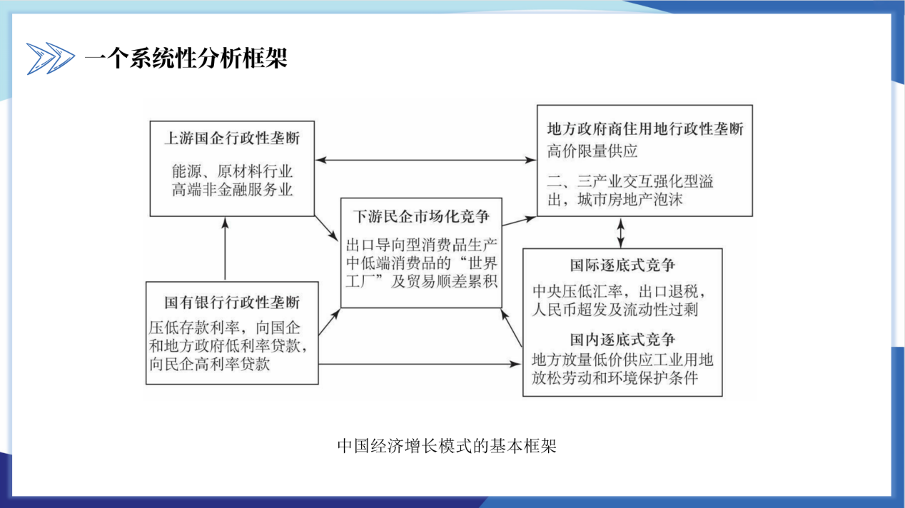 首先黄冰雁和周子杰同学介绍了本章的绪论和第一章,主要考察我国从20世纪末逐步发展起来的经济增长模式,以及同一时期地方政府以“土地财政”“土地金融”为依托推动的工业化和城市化。作者指出,中国的财政体制和经济管理体制,已经从转型第一阶段的相对分权走向了转型第二阶段的日益集权。经过40年的转型发展,中国初步构建了一个相对稳定的集权型、半市场化的经济体制,改革已到深水区,倘若不深化体制改革,其对经济、社会、环境的可持续发展造成的整体性挑战将是巨大的。