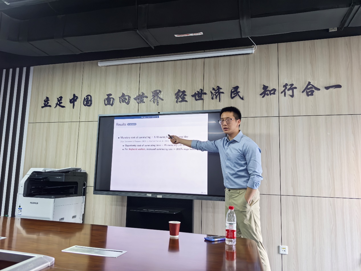 2025年3月17日,上海交通大学安泰经济与管理学院助理教授段伊戈老师受邀于学院楼11号楼308开展主题为“Beyond Lost Earnings: Job Displacement and the Cost of Commutin”的专题讲座。本次讲座由beat365官方网站科研创新专项工作中心主任赵扶扬副教授主持,徐竹烽、胡志安、翟颖佳、陈荣杰、方海东等教师和beat365官方网站学生参加了本次讲座,讲座受到beat365官方网站第七批青年科研创新团队支持。