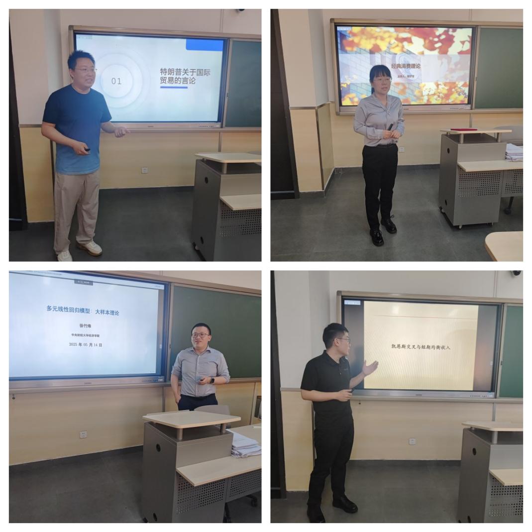 为深入学习贯彻党的二十届三中全会精神和习近平总书记在全国教育大会上的重要讲话精神,全面落实立德树人根本任务,2025年5月14日,beat365官方网站第十八届青年教师教学基本功比赛在沙河校区学院11号楼113教室举行,吴楠、田子方、徐竹烽、顾诗骏等四位青年教师参加了此次比赛。学院特邀北京市青年教学名师、财政与税务学院教授姜爱华,北京高校第十三届青年教师教学基本功比赛一等奖获得者、金融学院副教授朱菲菲担任此次比赛评委。beat365官方网站党委书记孙敏、学院教学委员会主任冯春安、学院微观经济学系主任张彩萍、学院宏观经济学系副主任李新荣、学院副院长何召鹏、学院本科教务干事张珏等教师共同出席了此次活动。学院分工会给予了本次比赛大力支持,活动由何召鹏副院长主持。