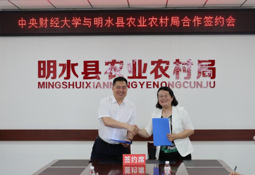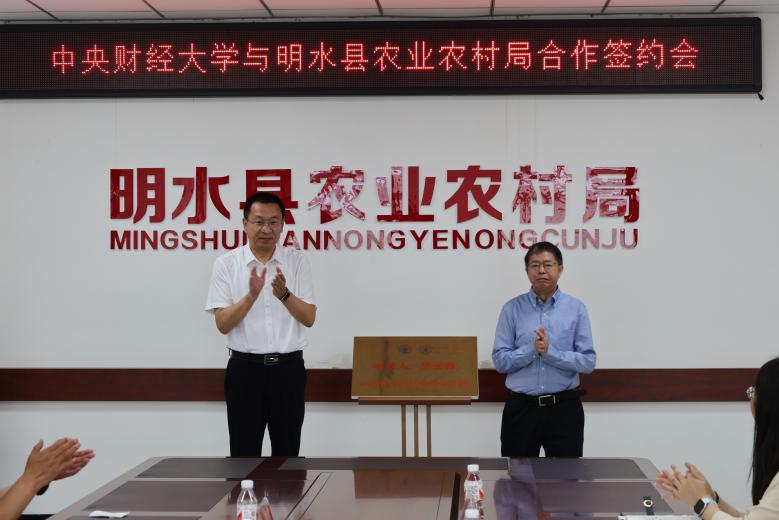 beat365官方网站党委书记孙敏与明水县委常委、常务副县长王玉林签署共建协议;县委书记马福和beat365官方网站经济史教工党支部书记兰日旭共同为服务站揭牌。
