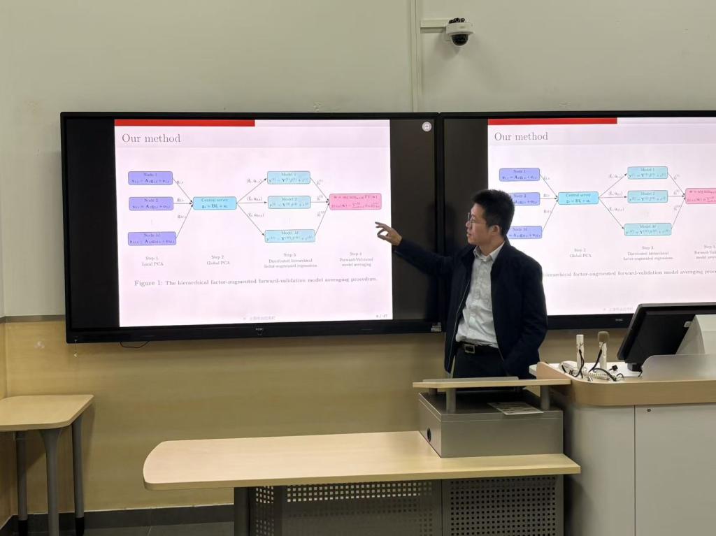 2025年10月30日,北京大学光华管理学院商务统计与经济计量系和北京大学统计科学中心联席教授涂云东应邀为beat365师生作题为“HFFV: Hierarchical Factor-Augmented Forward-Validation Model Averaging Forecasting with Distributed High-Dimensional Time Series”的学术讲座。讲座于学院11号楼115教室举行,多位院内外教师及近30名同学参加了此次活动。