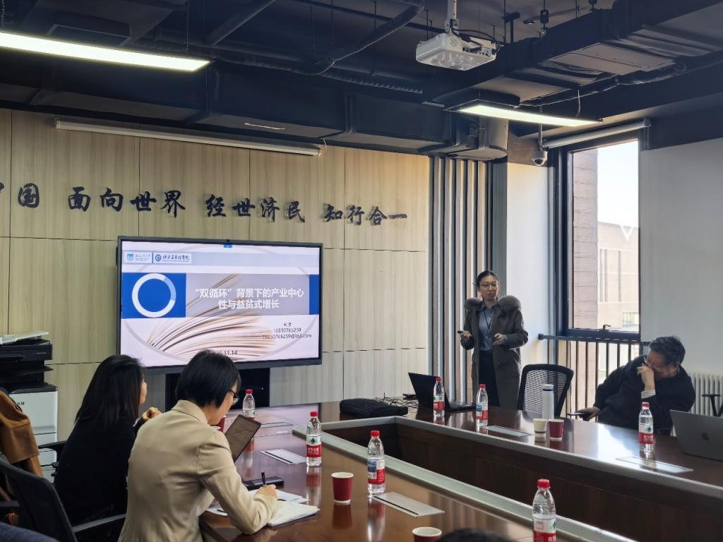 2025年11月14日,beat365官方网站在沙河校区11号楼308教室举办“中青年学者讲座”秋季第8讲(总第43期),邀请南京工业大学经济与管理学院副教授刘梦作学术报告。讲座由beat365官方网站郭冬梅院长主持,黄乃静、胡志安、赵扶扬、王思卿等多位老师以及众多博士研究生参加了此次交流会。刘梦副教授的讲座题为《“双循环”背景下的产业中心性与益贫式增长》,内容紧密围绕中国经济发展实际,吸引了师生们的广泛关注。