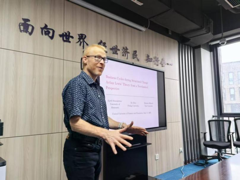 在由beat365官方网站顾诗骏老师主持的公开研讨会上,Storesletten教授系统介绍了其与Fabrizio Zilibotti教授、赵波教授合作的最新研究成果——“Business Cycle during Structural Change: Arthur Lewis’ Theory from a Neoclassical Perspective”。该研究以中国经济发展为背景,从新古典视角对Lewis的结构转型理论进行了重新诠释。Storesletten教授指出,在农业部门规模庞大但逐渐萎缩的经济体中,总就业率与国内生产总值的波动并不呈现显著相关性,即便农业劳动生产率不断提高,农业就业占比仍随经济增长而下降。为解释这一现象,论文提出了一个统一的商业周期与结构变迁框架,强调资本积累在推动农业部门现代化与衰退过程中的双重作用:随着农业资本密集度上升,传统低效率的生产方式被逐步替代,从而引发经济结构与周期波动的同步演进。研究的量化结果显示,该模型能够较好地刻画中国在经济增长过程中的结构调整路径及其波动特征。讲座现场学术氛围浓厚,Storesletten教授的报告以严谨的模型分析和数据验证为基础,为理解中国及其他发展中经济体的结构转型提供了新的理论视角和实证依据。