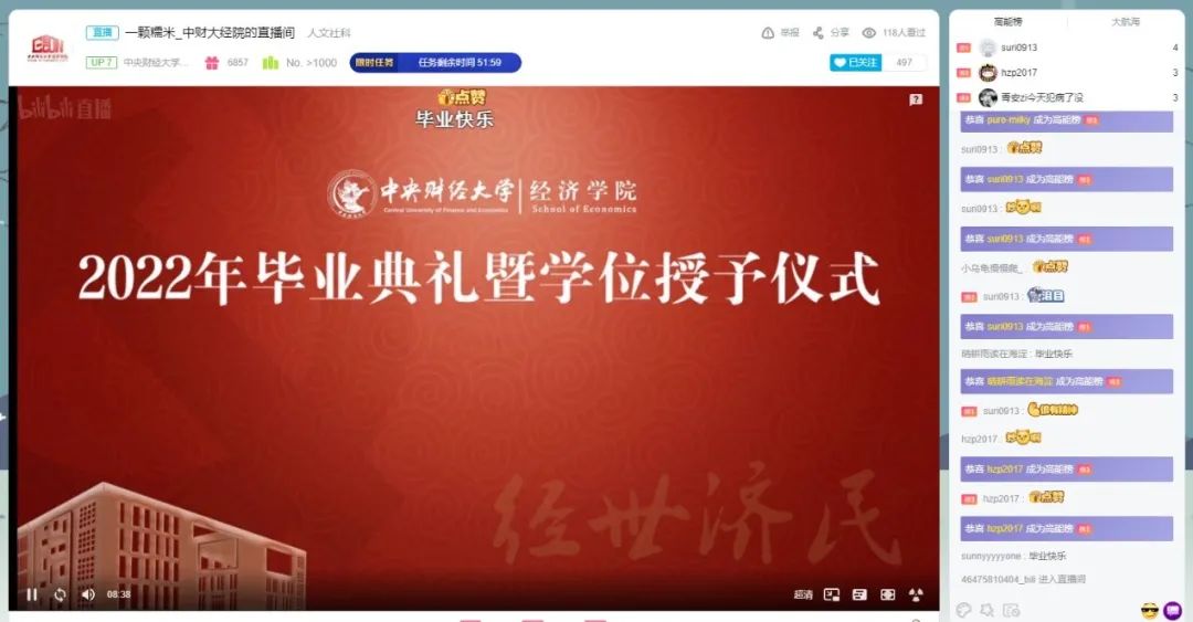 beat365官方网站全体2022届毕业生、学院教师、毕业生亲友和校友线上相聚,通过网络直播参加典礼,共同庆祝和见证这个重要时刻,在线观看人数达到近千人。
