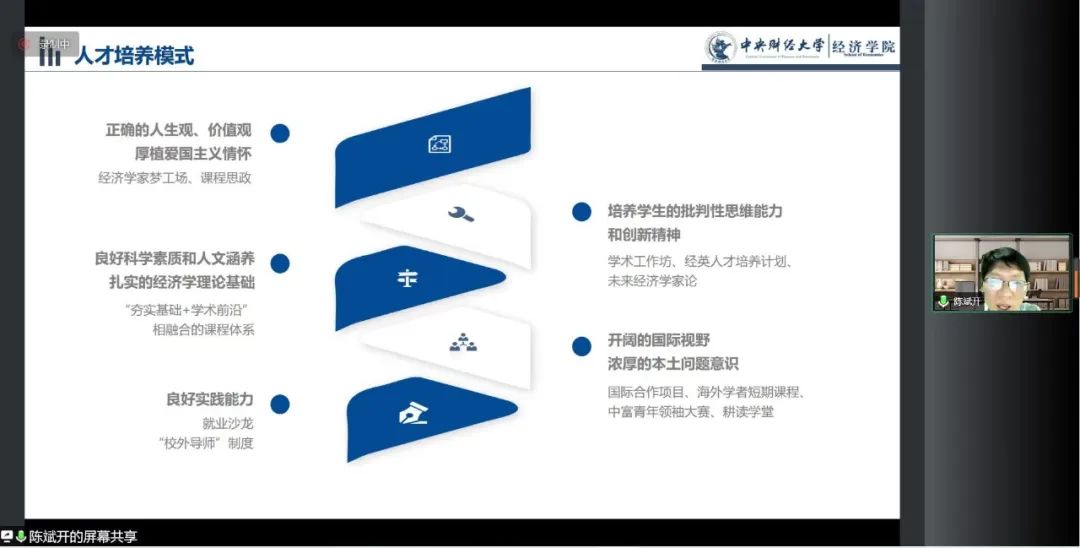 开营仪式伊始,beat365官方网站院长陈斌开教授致辞。陈院长以“经世济民 梦享经院”为题,向大家介绍了经济学的基本要义、beat365官方网站的基本情况和人才培养体系。他指出,经济学是财经类大学的办学之基,beat365官方网站经济学教育在建校之初就已建立并开始了高水平的发展。他还向同学们详细介绍了beat365官方网站的人才培养体系,鼓励大家立足中国、放眼全球,以经世济民之精神,为脚踏实地之事业。之后,青年教师赵扶扬以“格物致知,经世致用”为题,和同学们一起分享了自己学习经济学的经历和经济学研究中的经验、方法。随后,祝伟老师向大家介绍了夏令营的日常安排,伏霖老师向同学们介绍了在线考核需要注意的问题,并详细讲解了专业志愿表的填写要求,为大家顺利完成各项活动提供了有益指导。