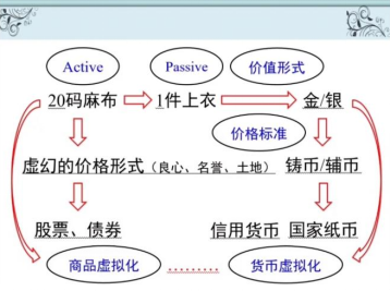 首先,在第一卷的货币理论部分,袁老师指出,交换过程当中产生的商品货币理论是货币理论的基础,马克思以麻布和上衣的交换为例分析了商品虚拟化和货币虚拟化过程,解释了价值尺度和流通手段基本职能之间的矛盾,并指出商品货币本身是内生的。