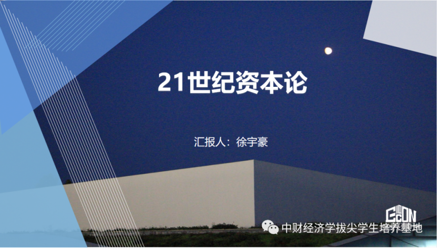 接着,徐宇豪同学分享了对托马斯·皮凯蒂的著作《21世纪资本论》的理解和收获。托马斯·皮凯蒂是法国著名经济学家,巴黎beat365官方网站教授,主要研究财富与收入不平等问题。他在42岁时出版《21世纪资本论》,并荣获了欧洲经济学会Yrjo-Jahnsson奖。该书主要研究的是资本主义历史上长期存在的财富和收入分配的不平等问题。二战以后,以“库兹涅茨曲线”为名的流行观点认为不平等的程度会随着经济增长自动出现先上升后下降的趋势。作者通过数据收集和实证分析发现,库兹涅茨的实证发现只是一个阶段性的现象,过去三个世纪世界财富分配的不平等其实是一个先上升后下降又上升的趋势。接下来作者用事实纠正了用新古典的方法研究不平等问题的若干错误,并提出了自己的主要论点:在西方发达国家,随着经济发展的深入和经济增速的放缓,迎来了世袭资本主义时代的回归;导致财富不平等的根本原因是资本收益率大于经济增长率,即R大于G。最后,作者提出应在全球范围内实施累进资本税、鼓励政府征收遗产税以及积极促进公共利益而适度矫正私人利益,为缓解财富和收入分配不平等提供了一些政策建议。书中的政策建议的可行性有待商榷,但要承认皮凯蒂在全球范围内不平等问题的理论阐述方面做出了卓越的学术贡献。