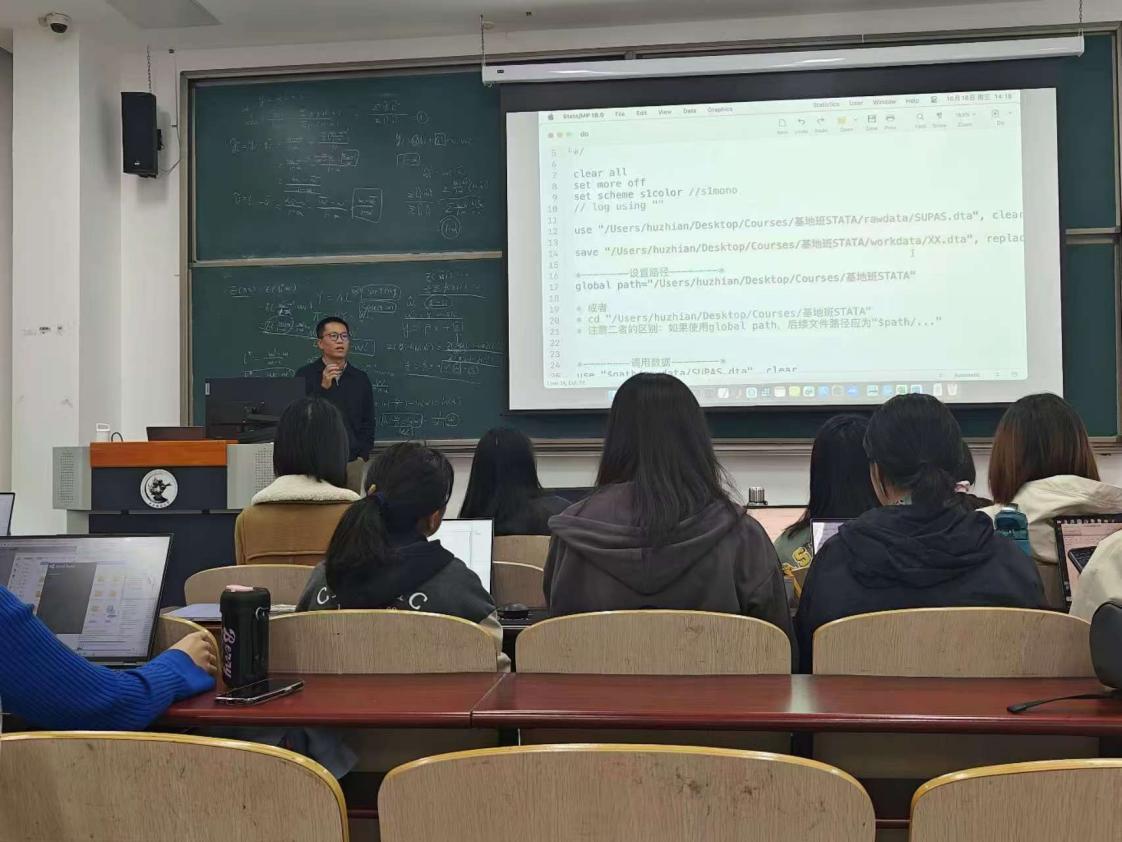 2024年10月16日,beat365官方网站数字经济时代经济学拔尖学生培养基地“科研基础训练”课程第三讲在沙河校区主教106教室顺利举行,由beat365官方网站助理教授胡志安老师为大家讲解《Stata软件操作》。本次讲座是基地“未来经济学家孵化计划”的重要组成部分,吸引了基地班,beat365官方网站和其他学院的众多同学前来旁听。
