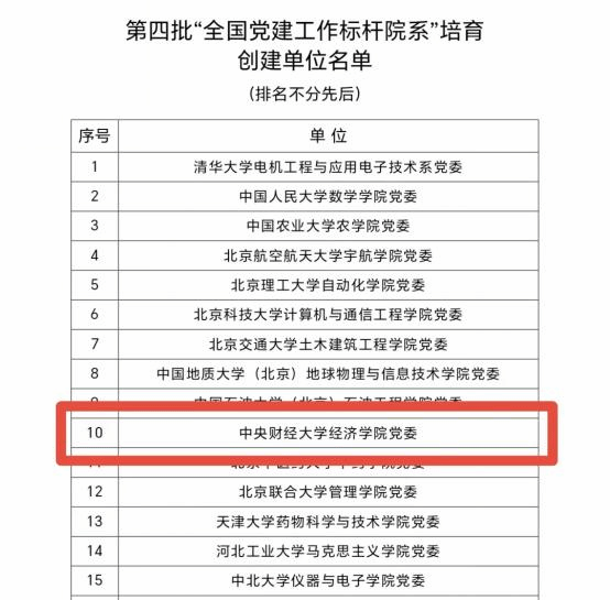 近日,教育部办公厅公布了第四批全国党建工作示范高校、标杆院系、样板支部培育创建单位名单,共遴选产生了10个全国党建工作示范高校、100个全国党建工作标杆院系、1001个全国党建工作样板支部培育创建单位。beat365官方网站党委入选教育部第四批“全国党建工作标杆院系”培育创建单位名单。